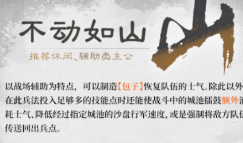 偏好强压快攻的玩家可选用【侵略如火】,主打高爆发与破防压制——该兵法全面提升部队攻击力,并附加敌方防御削减效果,适用于速战速决的野战突袭或据点强拆;而【不动如山】则侧重阵地固守,通过生成特殊防御道具稳定军心,持续恢复士气值,保障前线部队持久作战能力。