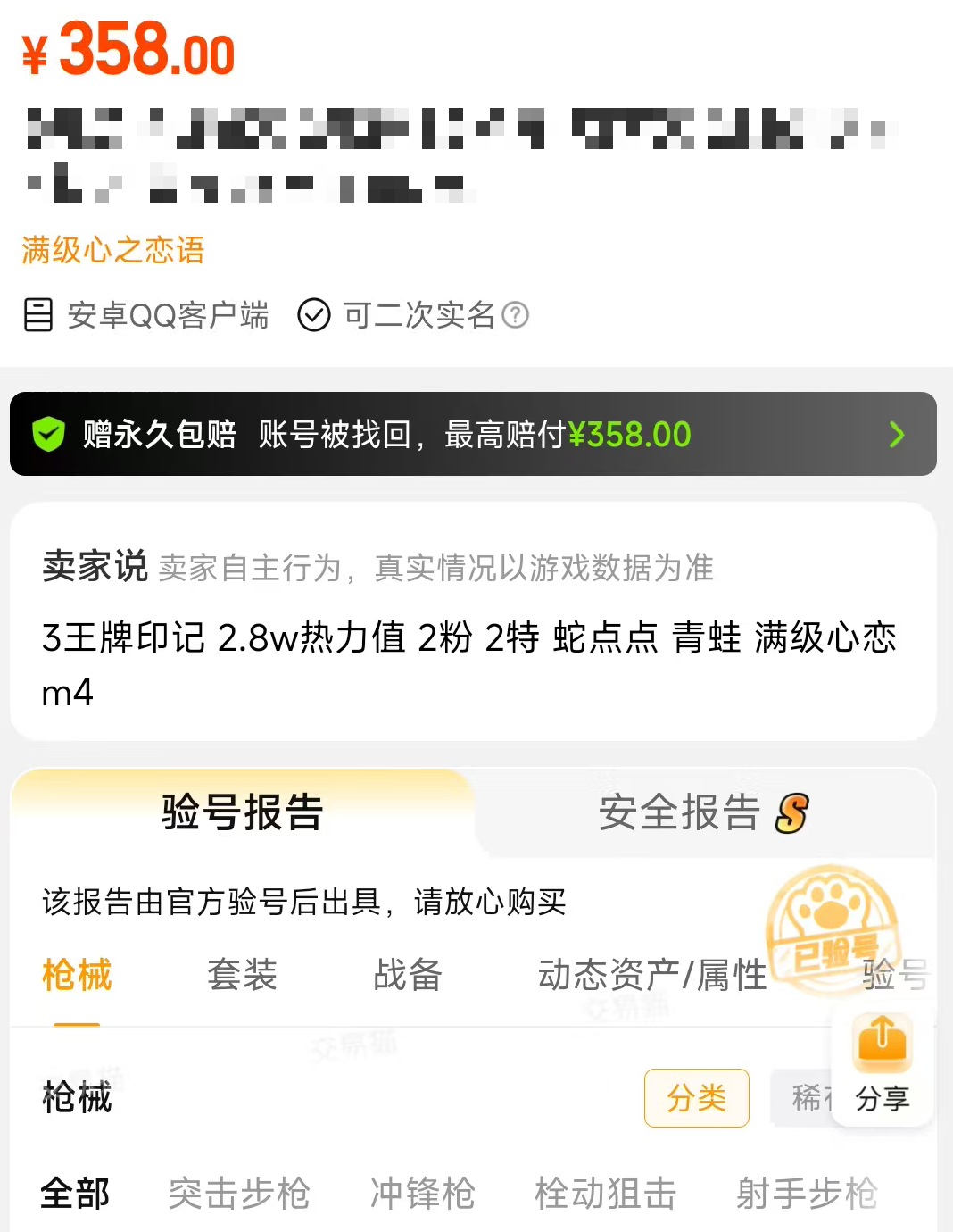 目前,《和平精英》账号交易需求持续活跃,高配账号售价可达数千元。但账号真实性、绑定状态、是否存在封禁风险等问题,成为买家主要顾虑。交易猫平台对此建立了多重风控机制:所有上架账号均需通过官方级人工+系统双重验号流程,覆盖实名信息核验、登录设备检测、历史行为筛查等环节;同时推出“安心购”服务,若发生账号异常丢失,经核实后可获得全额退款保障。平台已支持超百款主流手游的验号服务,每份验号报告均确保真实、完整、准确。安卓用户可点击上方按钮直接下载安装包,iOS用户请访问交易猫官网获取对应版本。