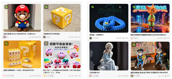 果然,大家一研究,发现基本都是从拓竹的3D模型社区 MakerWorld 上整来的免费模型。