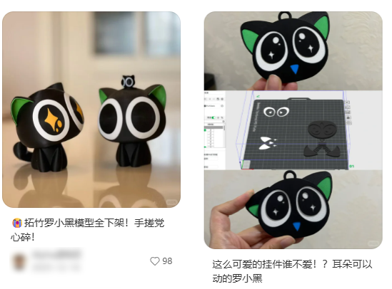 但是Labubu 和罗小黑核心就是靠实体潮玩赚钱。3D 打印模型对他们的生意,可以说是精准打击,一击即中。