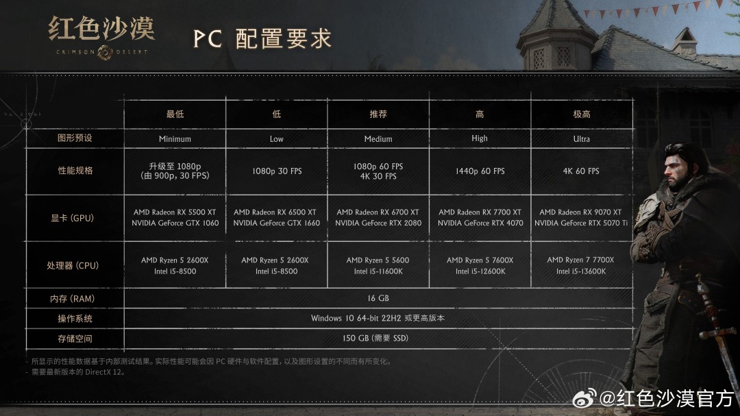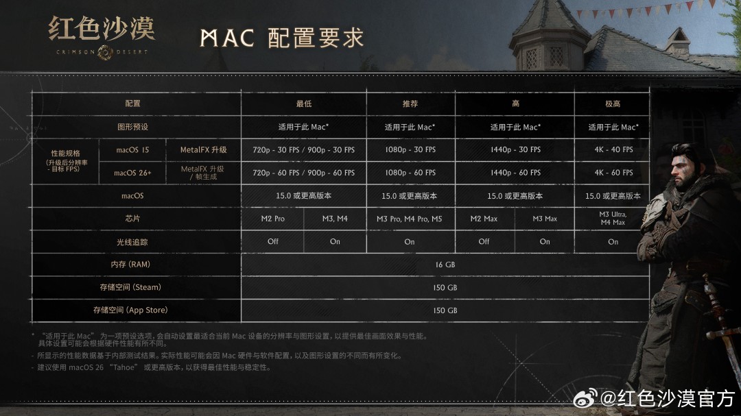 《红色沙漠》PC、主机、Mac、掌机等各平台配置如下: