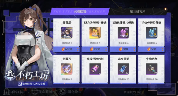资源兑换分为两大模块:其一为「灵魂摇篮」,支持使用「龙血金」兑换乔薇尼本体、SSR伙伴碎片及关键养成材料,所有商品均为活动专属,下架后不可恢复;其二为「第三研究所」,每日开放固定额度的「龙血金」免费领取,需手动点击领取,未领不累计。若资源缺口较大,可通过工坊礼包补充,但基础路线完全无需额外付费即可达成目标。