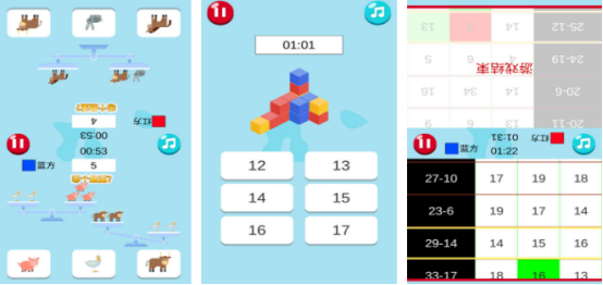 题库覆盖加减混合运算、数值比较(大小、重量、长度等单位换算)、图形数量判断等多元题型。支持单人闯关与双人PK两种模式,后者采用分屏实时答题机制,强化竞争激励效果;时间挑战模式则营造适度紧迫感,提升专注力与反应效率。