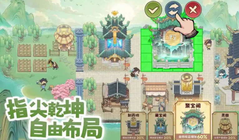 区别于常规种田类产品的田园古韵,《种田掌门人》将核心玩法锚定在“现代修真经济系统”之上。玩家需通过义诊、灵植培育、丹药炼制等日常行为积累修为值;每项经营决策均联动动态物价模型——市场供需实时波动,囤货时机、定价策略、渠道选择直接影响收益效率。昼夜循环机制进一步强化沉浸节奏:白天调度弟子开展社区服务与资源生产,夜间引导其静心打坐、参悟功法,实现时间维度上的双线成长。