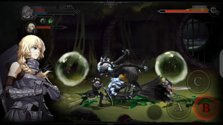 少有的移动端搓招格斗手游,采用双主角设定(人类战士与吸血鬼猎人),各角色拥有独立武器树:巨剑、拳套、十字架、镰刀等。不同武器对应完整指令集(如↓↘→+A触发升龙),并影响必杀技能量积累速率与受击硬直值。BGM采用交响化哥特风格,配合暗色调场景与吸血鬼主题叙事,强化沉浸式硬核体验。