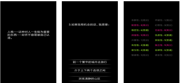 本作采用文字冒险形式构建心理映射空间,每一道设问都经过行为心理学逻辑编排,涵盖自我认同、价值排序、压力反应等核心维度。简约视觉风格弱化干扰,强化文本张力,使玩家在静默阅读与抉择中自然触发内省。解谜机制并非指向外部线索,而是对内在逻辑的一次次校准。