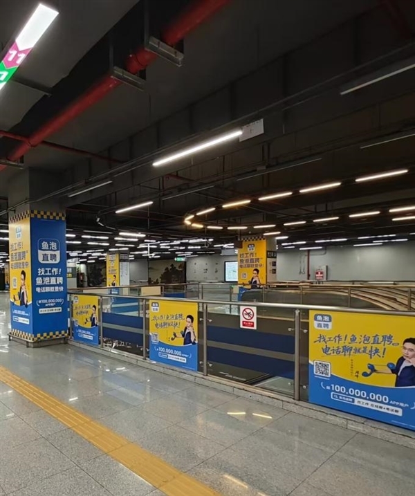 去年7月,鱼泡直聘在北京各大地铁站张贴公司魔性广告。