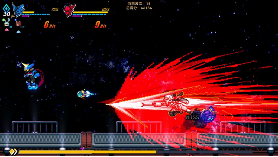 在《超合金冲击》中,玩家将操作两位风格迥异的宇宙猎人——机器人“牧”(No.2)与强化人“凯里”,探索传说中的宝藏星球AE-38。旅途中,玩家不仅需要面对各类宇宙强敌,还需与竞争者展开激烈较量,通过强化角色,组合属于自己的技能搭配和芯片组合,在一个最纯正的2D格斗动作游戏世界中,迎接一场场敌人蜂拥而至的震撼战斗。