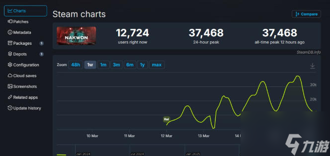 根据SteamDB显示,《纳克园:最后的乐园》在测试期间同时在线玩家峰值达到了37468人,接近4万人。