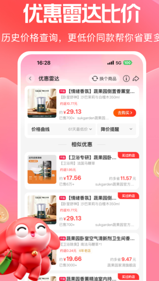 支持淘宝账号一键登录,订单与购物车数据自动同步,免去重复注册负担。内置“优惠雷达”可快速扫描商品在多平台的历史价格曲线,价格下调时主动推送提醒,有效规避买贵风险。用户在淘宝、天猫参与大促时,可叠加一淘专属红包与平台活动,实现双重让利。另有“小二精选”板块,由平台统一筛选并补贴优质商品,简化选购决策流程。