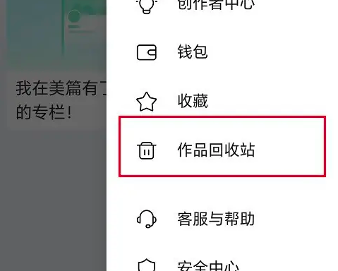 第二步打开美篇侧边栏之后,点击作品回收站