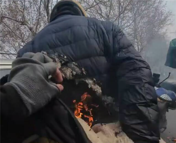 追上同行后,男子没有丝毫犹豫,徒手帮对方一件件剥离着火的衣服,拼尽全力将明火扑灭。