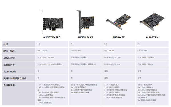 Sound Blaster Audigy FX Pro的定价为79.99美元,约合人民币500元。