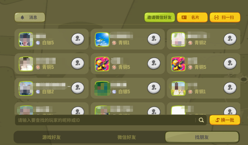 想来游戏里添加好友,玩家可以在每一局对战结束之后,直接在结算页面添加好友,发送好友申请,对方看到之后只要同意,双方就会成为好友,后期游戏过程中只要对方在线,就能邀请他一起开启挑战,假如玩家没有及时添加好友,可以直接把对方ID记录下来,通过定向搜索,也有机会添加对方为好友,可以选择打开游戏,点击右侧好友选项,在这里会有玩家的所有好友,曾经对局过的成员以及所有的游戏爱好者都会出现在里面。