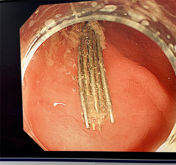 病情危急、刻不容缓,消化内科立即组织急诊科、胃肠外科等联合会诊,充分评估患者情况后制定内镜下取出方案。