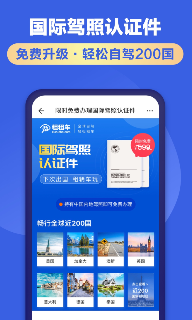 聚焦海外自驾服务,业务覆盖近200个国家及地区、6000多个城市,签约合作门店约20万家。支持为中国驾照用户提供免费国际驾照翻译认证件(IDP替代方案),满足绝大多数国家本地租车法律要求。针对初次出境自驾用户推出“闪租”服务:机场专人接机、中文一对一交付车辆、全程全险覆盖、免预授权冻结、免现场排队。保险产品由法国安盛AXA与中国平安联合承保,补充全险价格较当地门店低50%以上,理赔响应最快实现当日结案。