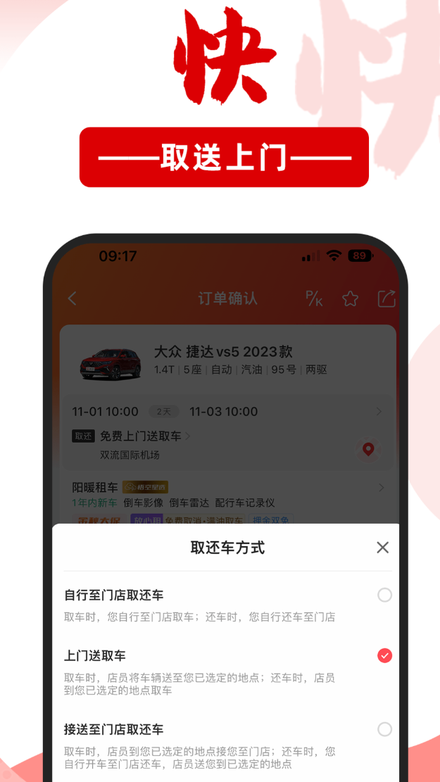 以高性价比见长,整体租金水平较行业均值低约30%。平台聚合车辆超19万台,车型库突破1万种,涵盖常规家用车、房车、性能轿跑及特种用途车辆。主打“门到门”履约能力,在服务半径内支持车辆直送用户指定地点,还车亦由工作人员上门回收。全流程线上化操作,从比价、下单、电子合同签署至取还确认均在APP内闭环完成。旗下设有新能源长租子品牌,面向月度及以上周期用车需求用户提供定制化方案。