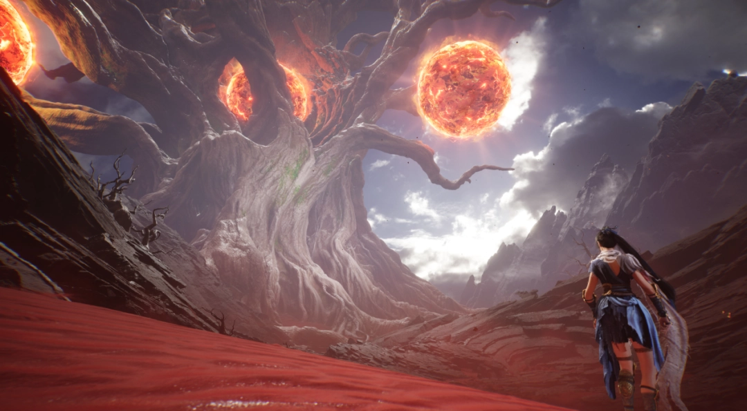 哪吒的史诗征程横跨十个区域,这些区域由远古巨神的躯体构成。虚幻5引擎支持动态昼夜与天气系统,Chaos Physics物理引擎则通过可破坏环境可视化哪吒的力量。后羿与大禹将作为同伴登场,根据遗物选择,游戏将解锁三种不同结局。