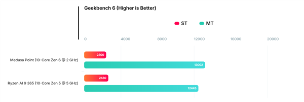 AMD代号Medusa Point的下代Zen 6架构APU工程样品再度现身Geekbench,测试成绩较首次曝光实现近乎翻倍提升。