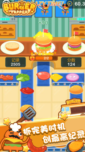 点点制堡,闲享时光,《点点汉堡大师》优化奖励机制,完成订单可解锁限定店铺装饰,同时提升游戏运行流畅度,杜绝卡顿,游戏以轻松的点击制作为核心,玩家需要快速处理客人的订单,把肉饼、蔬菜、酱料等食材按顺序组合成汉堡,游戏里有丰富的食材可以解锁,还有不同难度的关卡等待挑战,玩家可以通过完成订单获得奖励,用来装饰店铺。