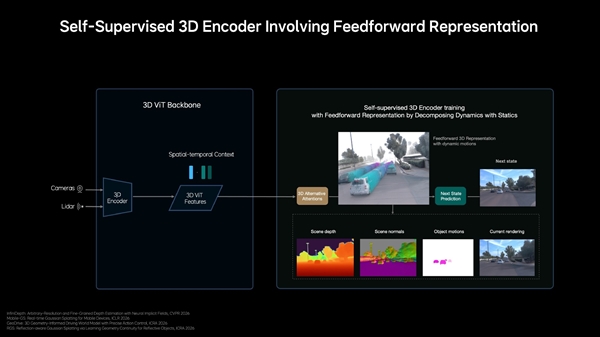 理想推出核心突破——原生3D ViT三维视觉编码器,让模型从一开始就工作在3D空间,同步完成几何结构与语义理解。