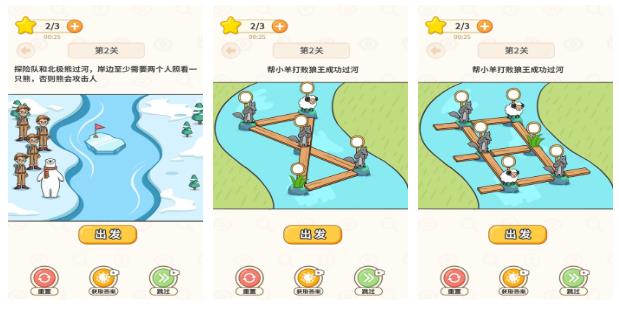 玩家需协助卡通形象的小牛跨越河流,核心操作为搭建浮木或平台组成的临时桥梁。操作节奏需精准把控,尤其关注小牛跳跃时机——延迟或提前均可能导致落水失败,影响整体通关效率。