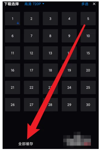 3、进入下载选择页面,勾选想要下载的视频,点击全部缓存即可开始下载。