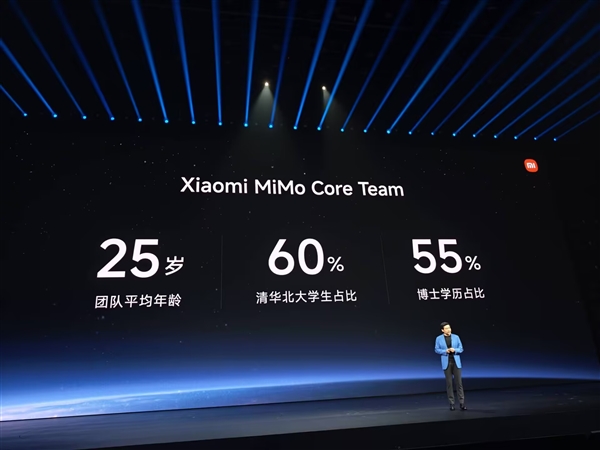 雷军表示,支撑这些成果的,是一支年轻又顶尖的AI团队。团队平均年龄仅25岁,人才密度极高,成员大多出自国内顶尖高校,博士占比高达55%。