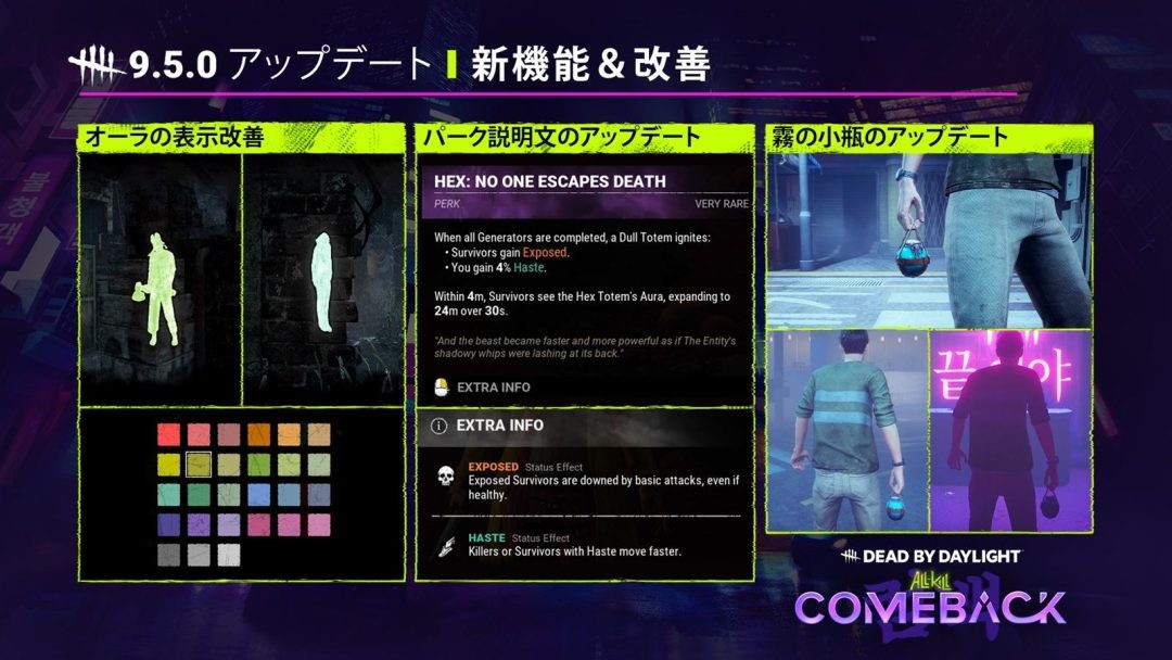 Behaviour Interactive工作室宣布,《黎明杀机》新章节All-Kill:Comeback上线,大量新内容实装,其中就包括游戏系列城市型地图首次登场。