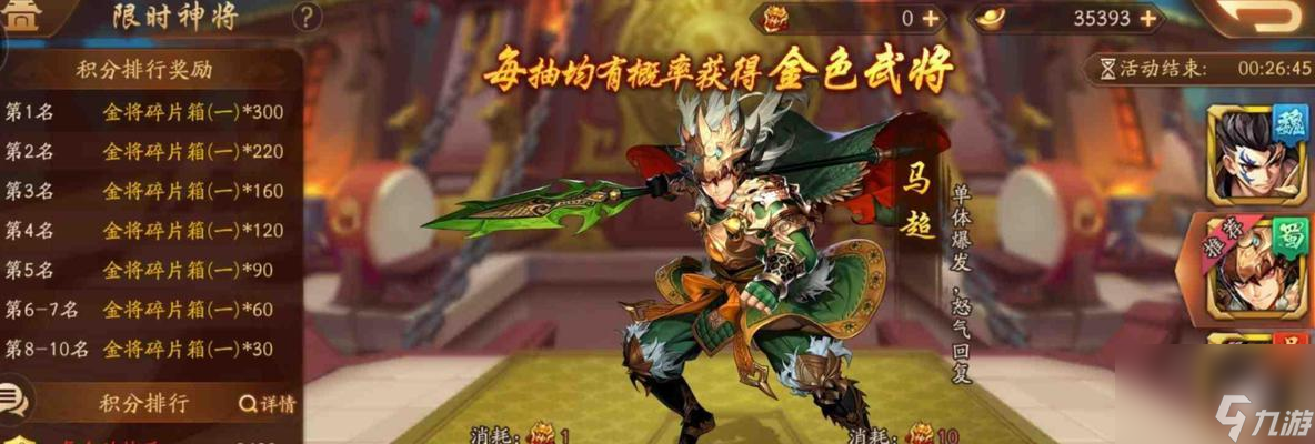 游戏中常常会有各种抽卡活动,有些活动可以获得赤金武将。在游戏中密切关注抽卡活动的开放时间和要求,合理利用抽卡机会,说不定就能获得心仪的赤金武将。
