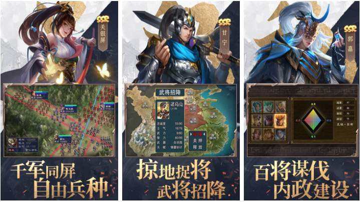 开放世界架构下的三国SLG革新之作,地图覆盖整个古代中国疆域,支持自由行军、水陆联合作战与跨州远征。武将系统深度融合历史典故,每位名将拥有独立成长线与羁绊机制。战役模式包含攻城、守城、伏击、夜袭等多种形态,配合昼夜更替与天气系统,强化战术决策维度。