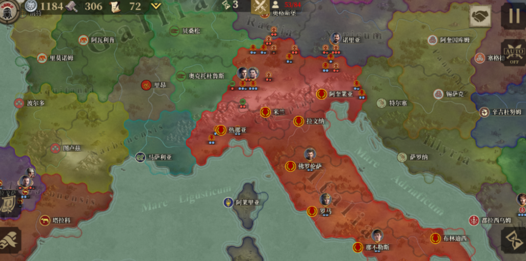 专注古罗马军事体系的写实向SLG,地图精确还原公元前1世纪环地中海地理格局。玩家可混合编组罗马重步兵、埃及弓箭手、迦太基战象等多文明部队,依据地形与敌情灵活调整阵型。领地扩张采用区块占领机制,每块领土需独立驻军与治理,强化战略纵深管理。