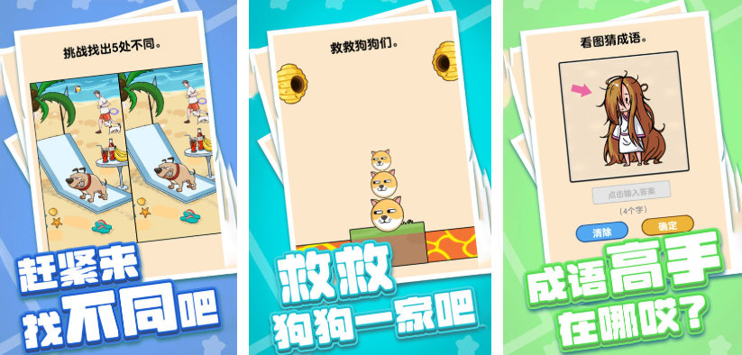 该游戏采用多模态益智架构,集成成语接龙、细节识别(找不同)、图形拼合三大主玩法,各模式均配置200+递进式关卡。题目设计强调非常规解题视角,尤其注重逆向思维与联想能力训练。内置实时PK对战系统,支持玩家间限时竞速比拼,显著提升交互深度与持续挑战动力。