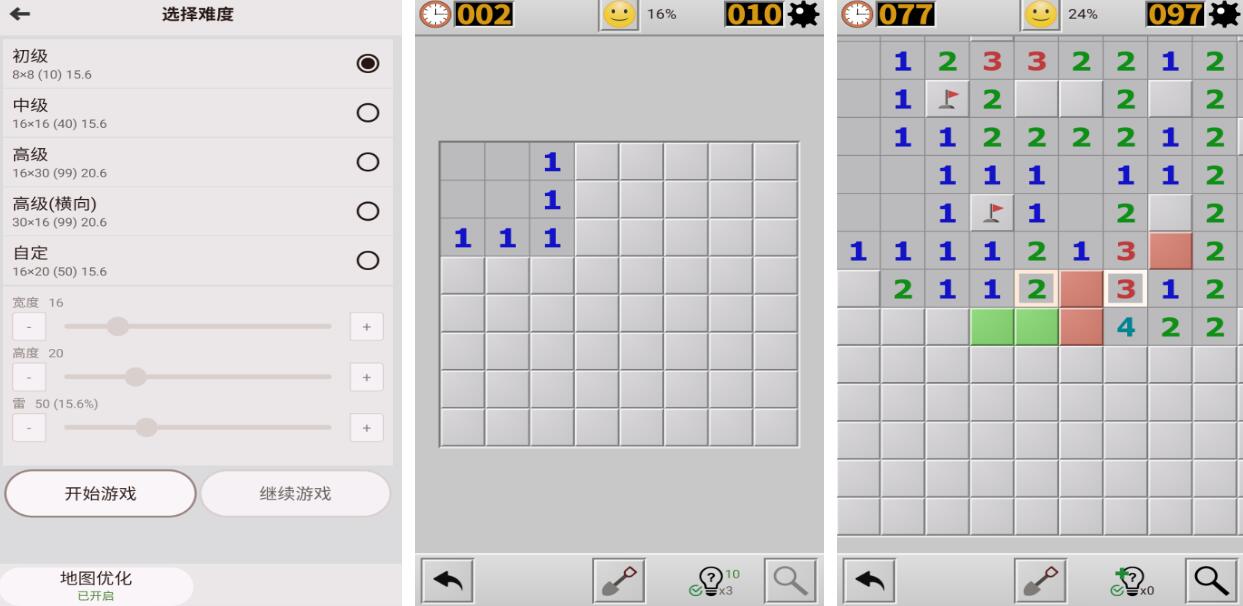 高度复刻PC端经典交互逻辑,还原原始扫雷视觉布局与数字提示系统。玩家依据方格显示数字推断相邻区域地雷分布,安全翻开全部非雷格即为通关。提供初级(9×9,10雷)、中级(16×16,40雷)、高级(16×30,99雷)三档难度,适配不同熟练度用户,规则简洁明确:触雷即止,全开即胜。