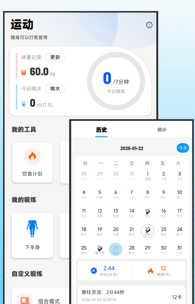没时间、没器械、没场地,这三个借口在这款软件面前都站不住脚。7分钟HIIT训练,燃脂效率对标1小时慢跑,椅子和墙壁就够用,出租屋里也能练。课程是专业健身教练设计的,减肥、增高、助眠、解压都有对应的专题,新手有入门课,进阶的有强化课,上班族还有工位放松课。语音教练风格幽默,BGM踩着发力节奏,拉伸部分的音乐也换成了舒缓的,不会让人觉得枯燥。