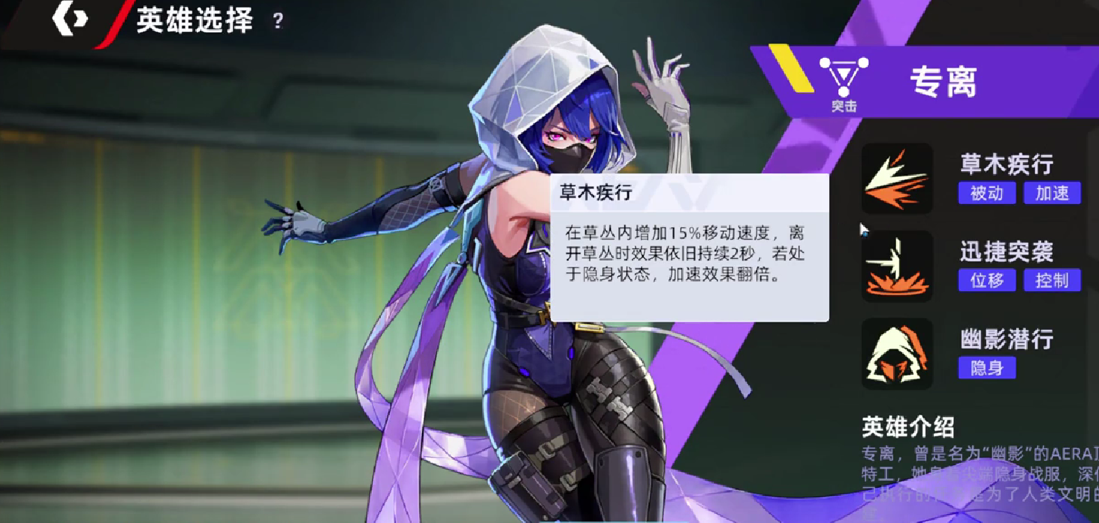 在战斗的过程当中,专离的机制主打的就是突袭跟拉扯,这个需要环环相扣,比如说专离可以先发动被动技能草木疾行,其实就是进入草丛之后就能够立刻获得移动速度加成的情况,一旦离开草丛之后,效果还能够延续两秒钟。最为关键的是如果开启了隐身的状态,这个移动速度增影的效果将会翻倍。因此,专离其实能够悄无声息的来到敌人身边,打敌人措手不及,而他如果施展了一技能瞬捷突袭。这个直接就是向前突进了一段距离,突进,结束之后就能够眩晕身后的敌人,对怪物眩晕的时间往往会更长。