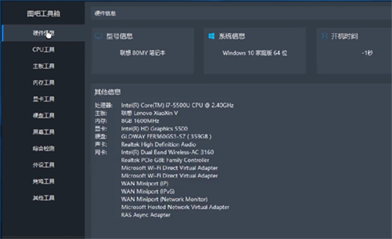 2、进入软件页面可以看到左侧菜单栏有硬件信息,侧面板就会显示电脑各硬件的实时信息,包括有CPU温度。