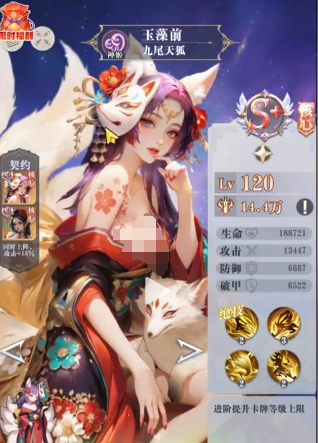 玉藻前这也是长线副本以及跨战斗力挑战的专属法师拥有多段法术伤害,搭配中毒的效果,在面对高血量的单位时,就可以形成致命克制。它的技能循环速度是比较快的,并不需要长时间等待冷却,可以持续的释放多段伤害,中毒效果还可以持续的消耗敌方的血量。哪怕战斗力低于副本的要求,靠着持续伤害还是轻松可以磨过,不管是打长线续航副本还是挑战战斗力BOSS都可以稳定的输出。