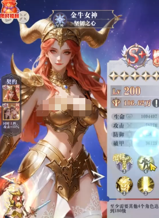 最后那自然就是选择金牛女神,这就是一个全能型的卡牌,强度是很不错的,有输出有控制,有坦度。金牛女神的强势体现在多个方面,有高额的回血效果,还有实用的控制能力,以及打断技能。敌方在准备开大招时,一个打断就可以让对方的蓄力全部白费,加上眩晕的效果,那控场的能力还是比较出色的。另外他的坦度堪称天花板,带上专属的神器,就可以获得90%的免伤效果,即便是这个效果在5秒内迅速的衰减,那也可以抵抗大部分的伤害。