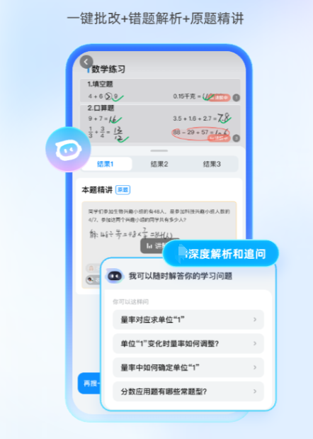它不光能快速搜题去查看详细地解题步骤,更很是注重讲透解题的思路,而不是直接给答案喔。还有同步作业批改、作文素材库、口算练习、知识点精讲这些实用功能,特别适合中小学生课后巩固,家长辅导作业遇到难题也能靠它帮忙。