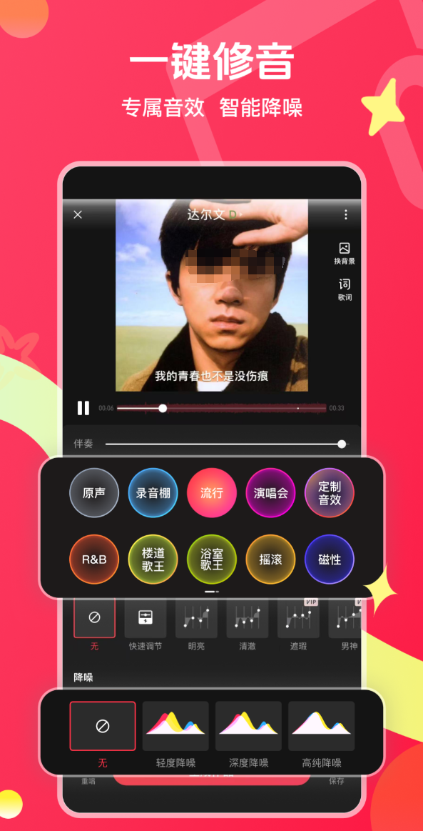 专注移动端人声录制与音效处理,内置专业级音频引擎,提供录音棚、KTV、演唱会三种声场模拟模式,适配不同演唱风格。智能修音功能响应迅速,支持一键调音,大幅缩小用户演唱与原曲在音准、节奏、混响等方面的听感差距。曲库更新效率高,覆盖流行、国风、怀旧金曲及榜单新热单曲,风格维度丰富。社区生态活跃,除常规作品发布外,还设有6人实时抢唱PK机制,强化即时对抗性与社交黏性。