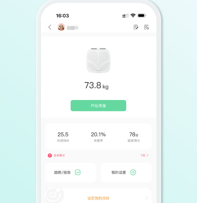 在连接体脂秤后,能快速测出体脂率、脂肪量、BMI等核心的数据,还能私人定制简单的饮食食谱和轻运动建议哦,贴合普通人的日常作息,不用刻意节食或高强度运动。除了体脂管理,还能记录健走、跳绳等日常运动,称重打卡也很方便!