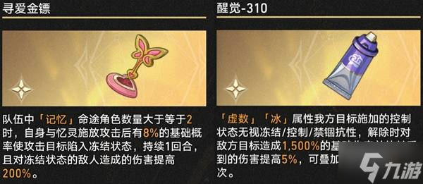 加权奇物一般选择【寻爱金镖】+【醒觉-310】蹭点增伤 —— 当然,考虑到【寻爱金镖】的冻结基础概率实在惨不忍睹,这套加权奇物对整体输出的实际提升只能说聊胜于无。
