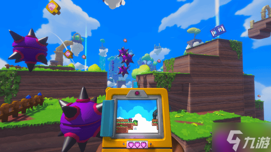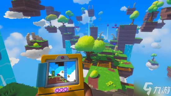 游戏在玩法上提出了一个颇为大胆的构想:玩家以第一人称视角控制3D世界的主角,而主角手中正拿着一台名为“Qboy”的复古2D掌机。主角在3D世界中的所有移动与跳跃动作,都将实时同步至这台2D掌机屏幕内的像素小人身上——官方称之为“5D同步交互”。