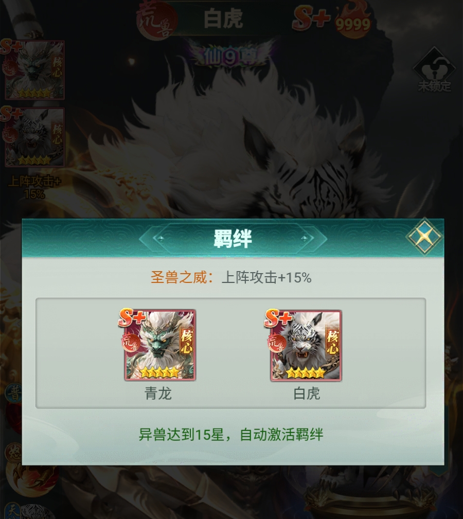 随着星级提升,白虎的成长路径愈发清晰:升至九星时,可在战斗中随机为自己叠加嗜血效果,层数上限为三十层;每层均同步提升攻击力与吸血倍率,且效果全程持续、不可驱散。当星级突破至十星,每次触发嗜血的最低层数稳定为三层,大幅缩短叠层周期。此外,在角色境界达到真仙二重后,每层嗜血额外提供2%的人形敌人伤害加成——此项增益使其在PVP对抗中具备极强的针对性压制力,也成为其竞技场高频出场的关键原因。