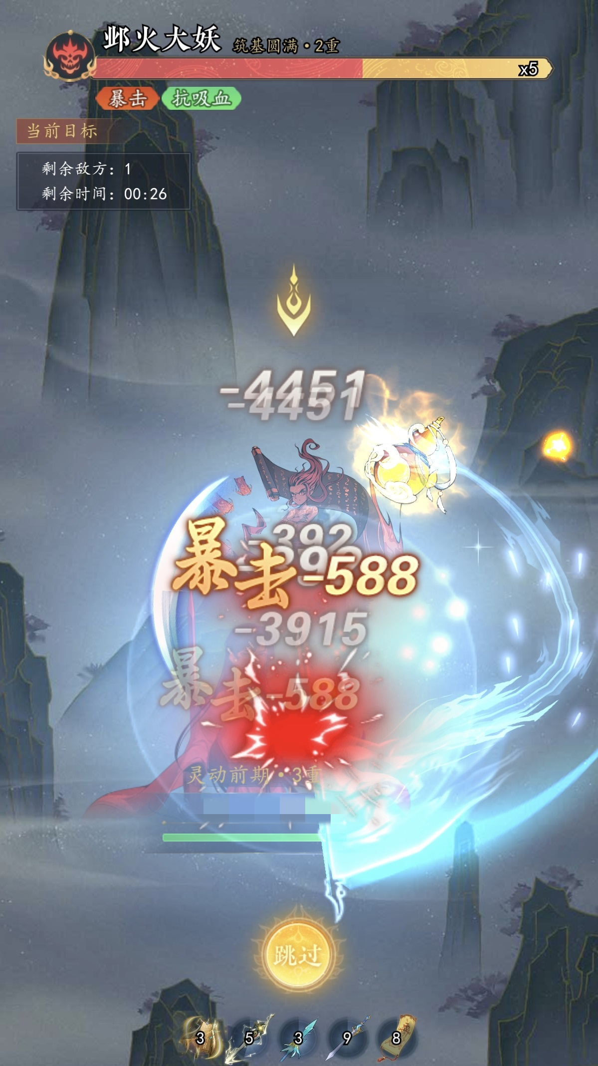 在战斗之前大家要注意,锁妖塔有冲塔的设定,就是当前玩家战力比需要的战力高很多,那么可跳过战斗阶段直接往上冲到战力相关的层数,所以小编建议大家不要在锁妖塔浪费太多时间,先通过其他方面提升战力,然后来这里直接冲。冲不动了之后再去提升战力,回来继续冲,这样可节省很多时间。