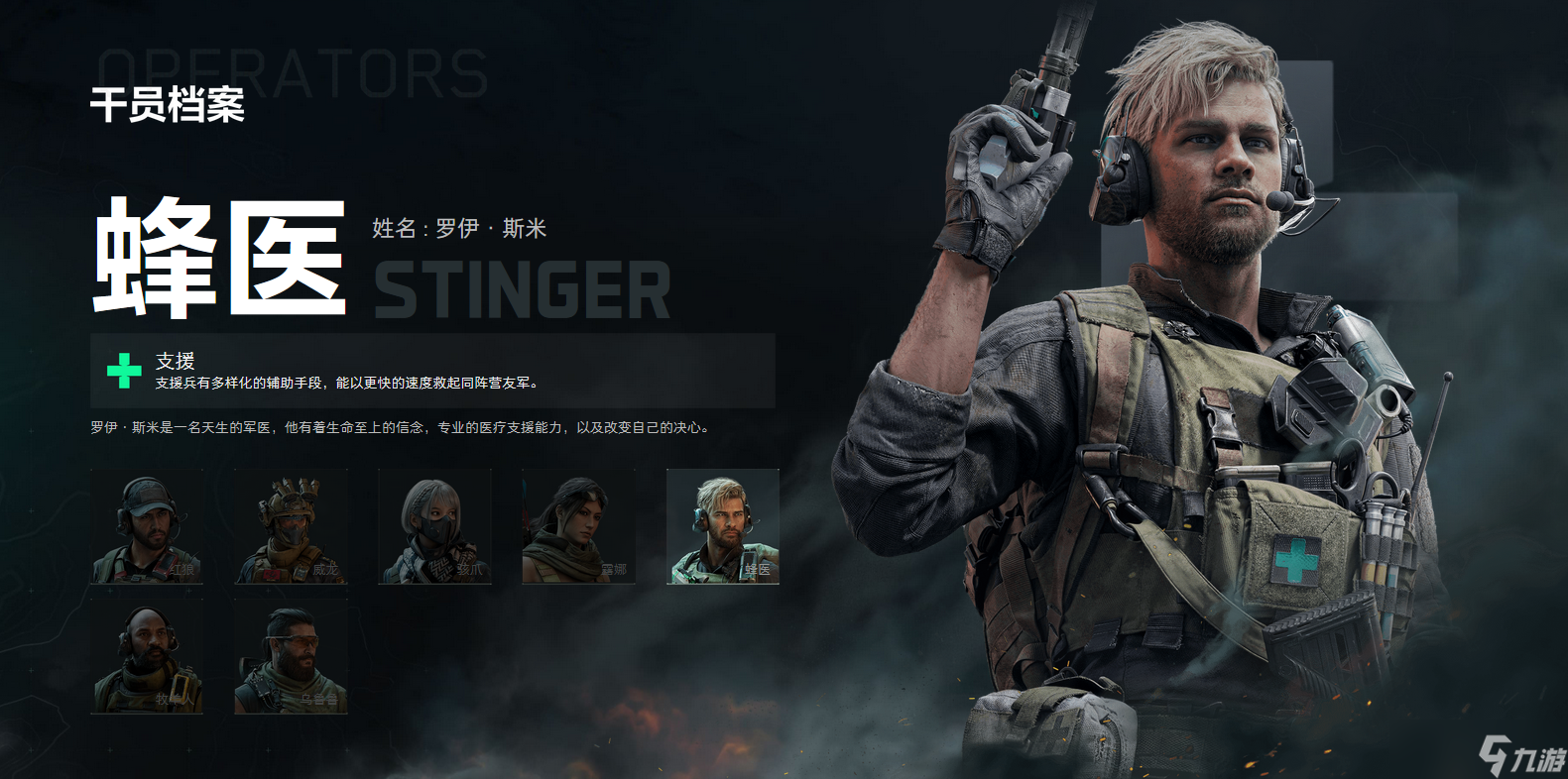 他的核心战术装备是激素枪,发射的子弹自带追踪效果。平时不开镜的状态下可以同时瞄准多个友军单位,一次性给范围内的多名队友抬血。开镜之后则可以锁定单个残血目标集中治疗,治疗的同时还能暂时抑制住负面异常状态。遇到紧急情况长按技能键还能直接给自己治疗,对着敌人射击也能造成少量伤害。激素枪还有个很实用的联动机制,射击自己丢出的蜂巢科技烟雾弹之后,能把普通的遮蔽烟雾转换成治疗烟雾。在烽火地带模式里,被激素枪治疗过的队友除了瞬间回复10点生命值之外。还能获得持续两秒的回血buff,以及长达30秒的异常状态免疫。在全面战场里激素枪的治疗效果还能和医疗包、呼吸回血效果叠加,不需要等队友找掩体打药。