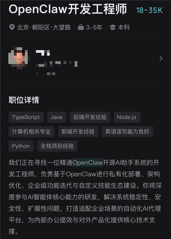 比如「OpenClaw开发工程师」。