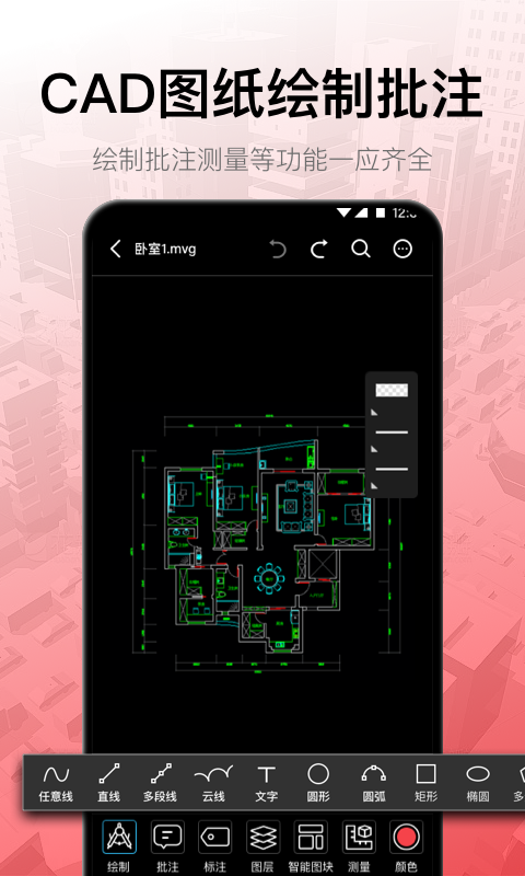 面向移动场景深度优化的专业CAD绘图应用,专为建筑、土木及机械领域用户打造。支持在手机端新建工程图纸,提供线条绘制、尺寸标注、图层切换、图形缩放、测量计算及文件导出等完整制图流程。通过云端账户体系,实现手机、网页端与桌面端三平台图纸数据自动同步,保障设计进度无缝衔接,不受终端设备限制。
