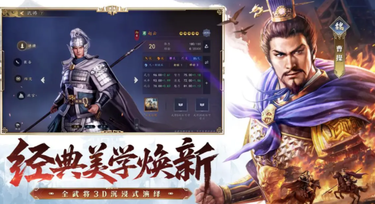 美术层面采用写实国风立绘风格,每位武将均配备独立高清人设图与专属剧情篇章,配合语音互动与关系培养系统,强化代入感与情感联结。玩家不仅能了解其历史功绩,更能深入其性格逻辑与阵营立场,在沉浸式叙事中重构属于自己的三国世界。